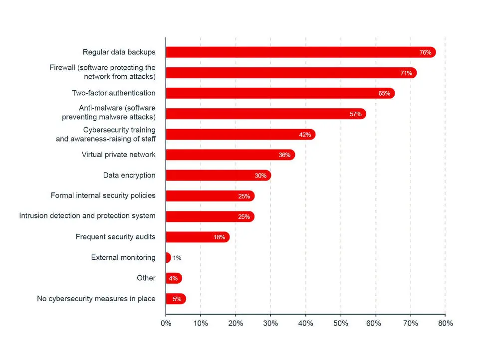 Chart 2: Tools and measures implemented and currently used by companies (% of small businesses that use them)