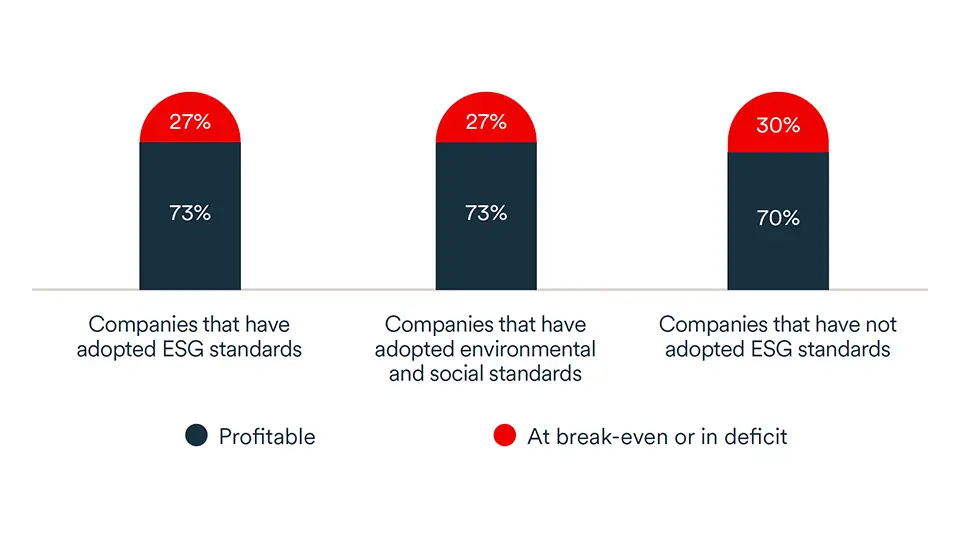 Suppliers that have implemented ESG practices tend to be more profitable compared to those who have not, albeit by a small margin This confirms the findings of a previous study showing that the most environmentally proactive SMEs generate higher profit margins and experience greater sales growth than those that are less proactive.