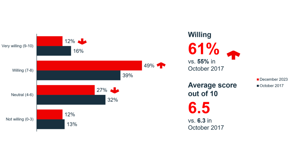 On a scale from 0 to 10, where 0 means that you are not at all willing and 10 means that you are very willing, how willing are you to take risks regarding your personal financial investments?