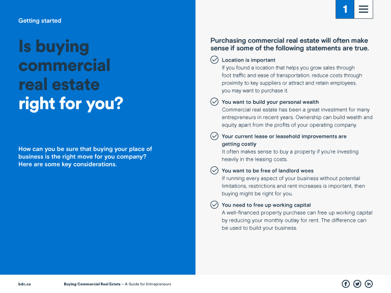 • Decide if owning commercial real estate is the best option