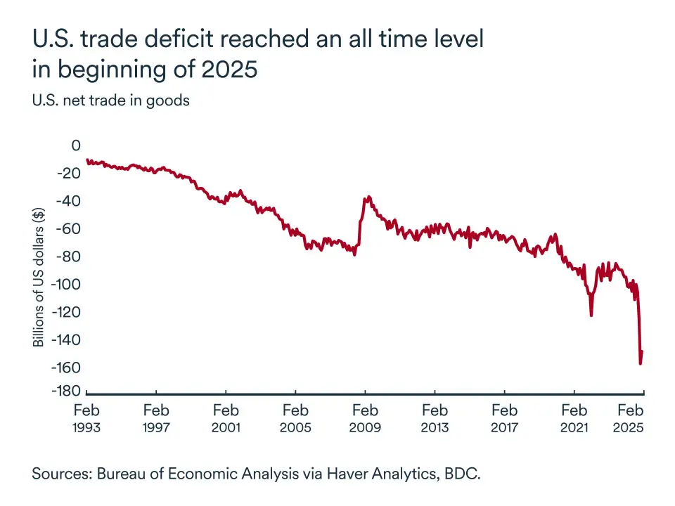 On April 2, the world's most important economic power announced tariffs targeting almost all countries. Doing so, the U.S. administration hopes, to reduce its trade deficit that has been growing for decades and, which reached unprecedented levels in January and February 2025.