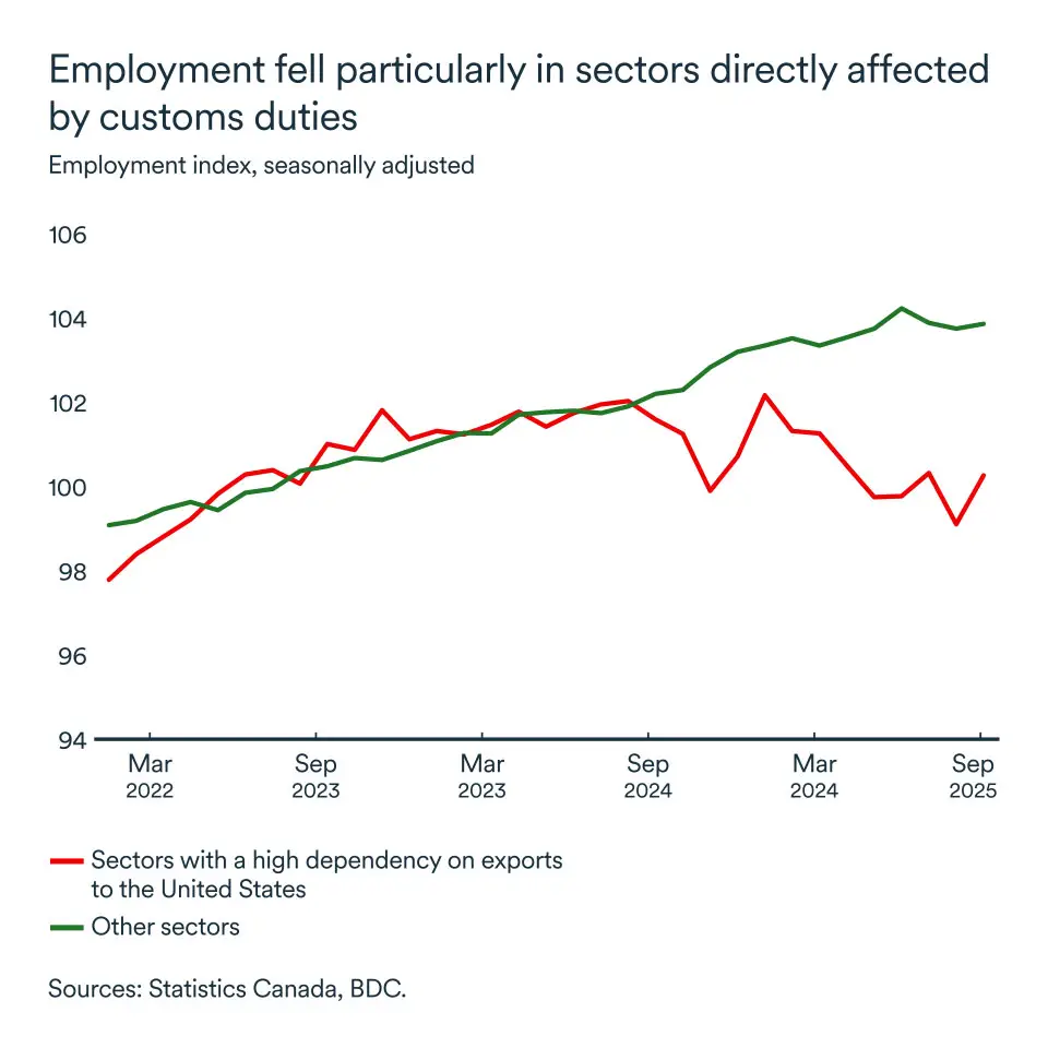 Job losses have been observed in sectors heavily exposed to U.S. trade since the beginning of the conflict, but employment remains stable elsewhere for now. In general, the labour market reacts slowly to economic changes, as hiring and training employees takes time and is costly.