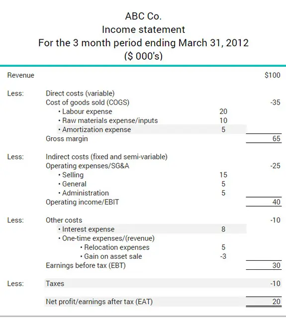 Using ABC Co.’s income statement, we can calculate its cash inflow (EBITDA) as follows: