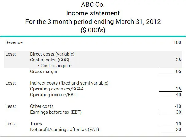 The sample income statement below shows the cost of sales for a retailer/wholesaler that purchased 10,000 units of a single product for $3.50 each and sold each unit for $10.