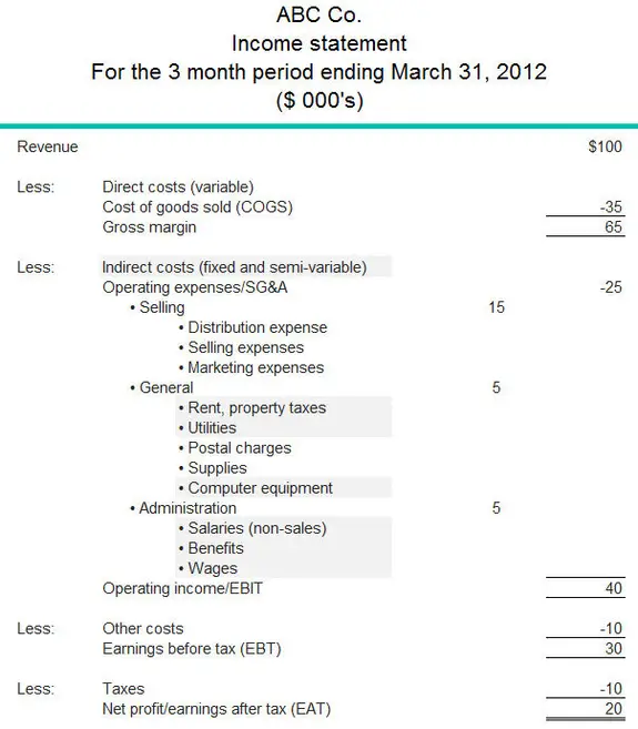 The categories of fixed and semi-variable costs that make-up overhead, are found in the income statement below in the indirect costs section.
