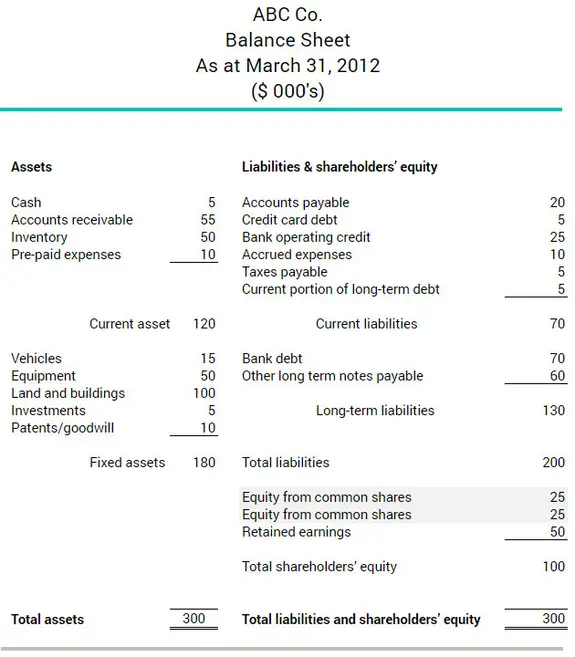 The balance sheet below shows ABC Co. had $50,000 in share capital ($25,000 in common shares and $25,000 in preferred shares) as of March 31, 2012.