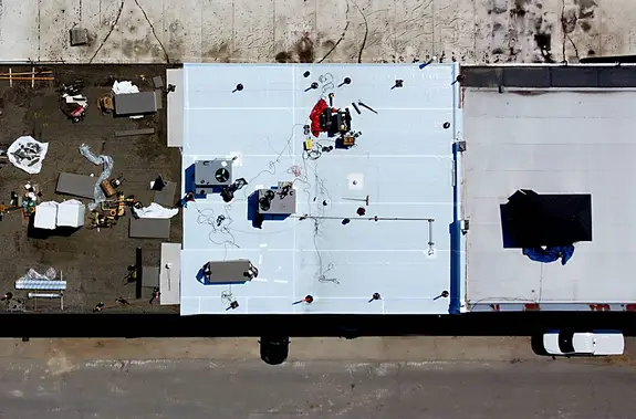 Aerial view of Enviro-Steward’s blue roof under construction. Source: Enviro-Stewards
