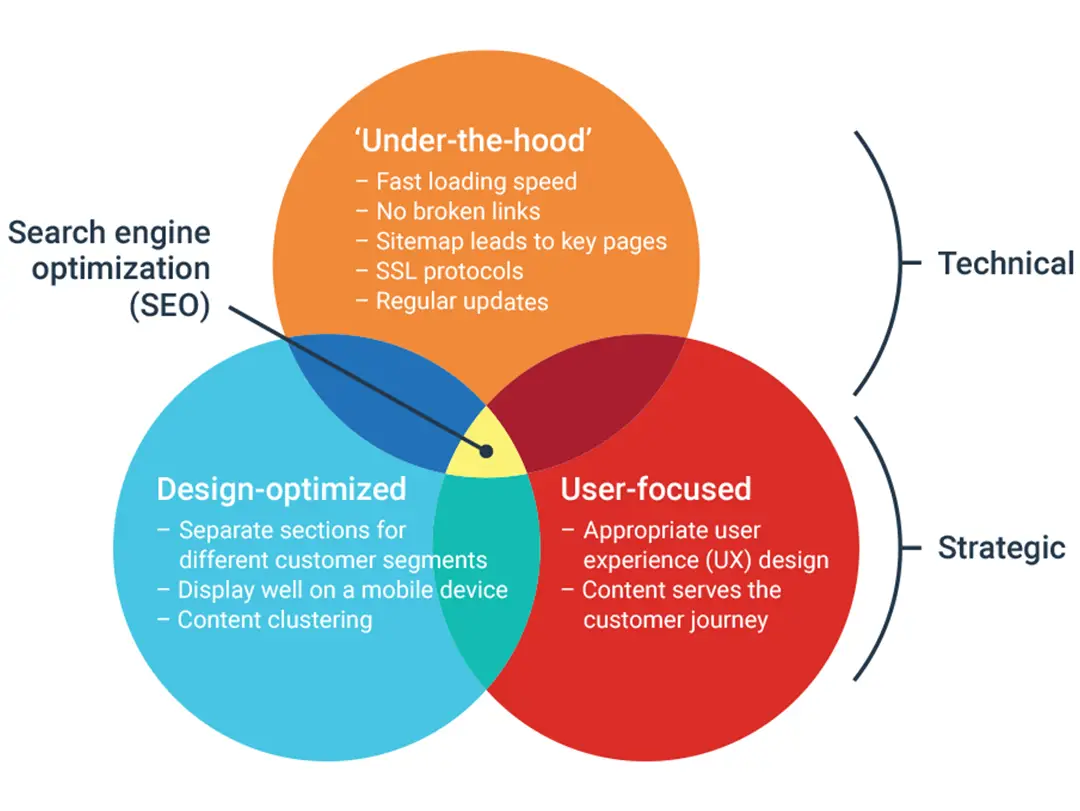 Technical and strategic elements meet in the case of SEO and keyword research, which can provide guidance on how to integrate and organize content to make it more search friendly.