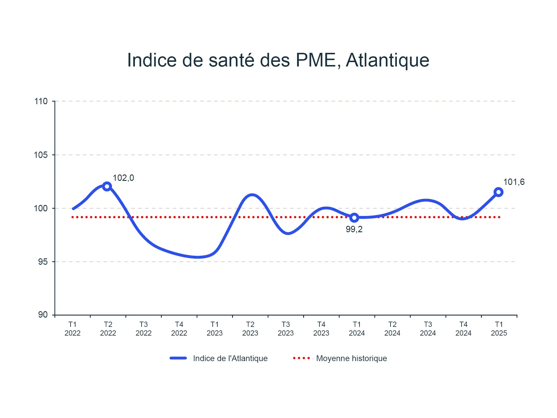 Dans l’ensemble, les provinces de l’Atlantique ont commencé l’année avec confiance et la capacité de faire face à une plus grande incertitude économique. Toutefois, les droits de douane chinois sur les fruits de mer pourraient peser sur la santé des PME de l’Atlantique à compter du prochain trimestre.
