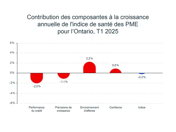 L’environnement d’affaires a été le principal facteur de la baisse de 5% de l’indice par rapport à son niveau de 2024, l’économie de la province ayant connu un ralentissement pendant presque toute l’année dernière, surtout à cause des taux d’intérêt élevés et du poids important de la dette qui pèsent sur les entreprises et leurs perspectives.