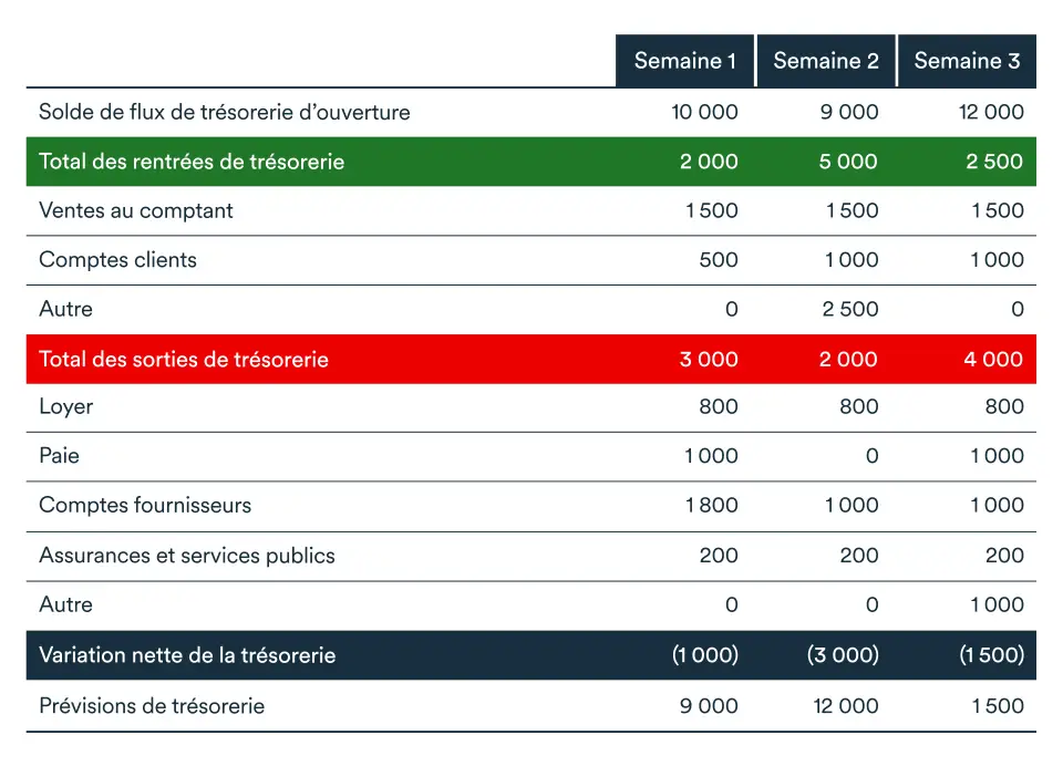 Le planificateur de trésorerie est une feuille de calcul qui compare toutes les entrées et les sorties de fonds de votre entreprise sur une période donnée. Il vous aide à déterminer la somme que vous pouvez vous attendre à avoir dans votre compte bancaire à la fin de cette période. Il vous aide aussi à avoir suffisamment de liquidités pour payer vos factures et éviter un grave problème de flux de trésorerie.