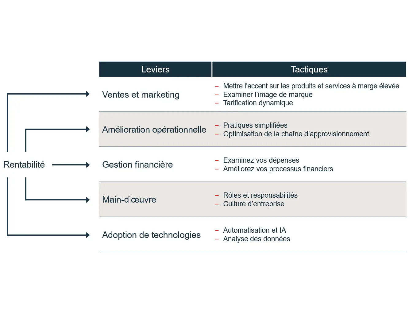Figure 2: Exemples de tactiques que vous pouvez utiliser pour améliorer vos marges