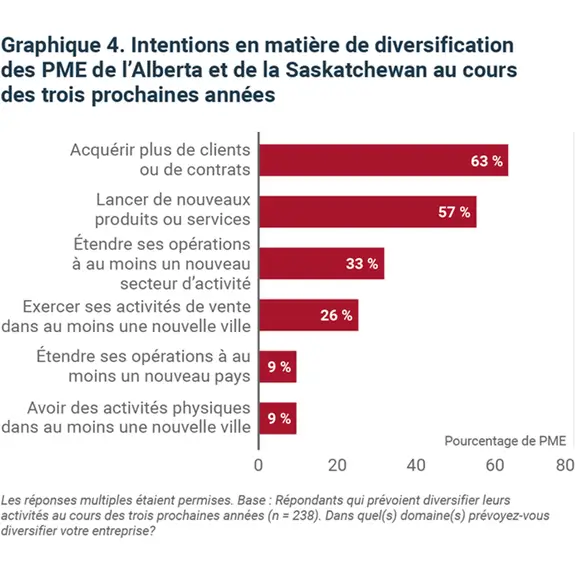 Le sondage mené auprès de 500 propriétaires d’entreprise et décideuses et décideurs en Alberta et en Saskatchewan a révélé que les entreprises diversifiées étaient deux fois plus susceptibles d’avoir connu une forte croissance des revenus (plus de 10 %) au cours de l’année précédente.