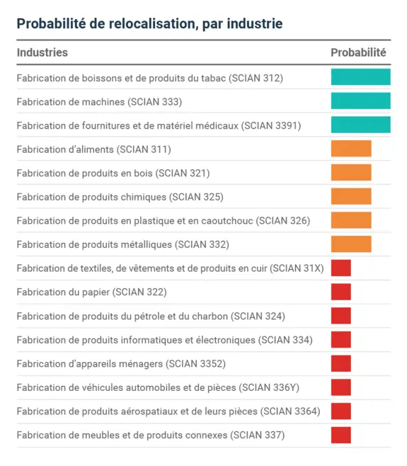 Il convient de surveiller de près les tendances de délocalisation et de relocalisation dans le secteur manufacturier canadien, surtout à mesure que les répercussions de la pandémie et d’autres changements dans le paysage économique se préciseront.