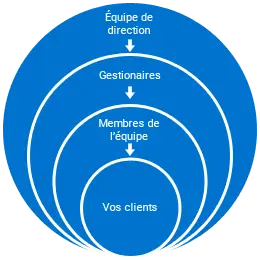 Le diagramme suivant montre l’influence relative de votre équipe sur l’expérience client et la dynamique de soutien qui devrait exister dans votre entreprise.