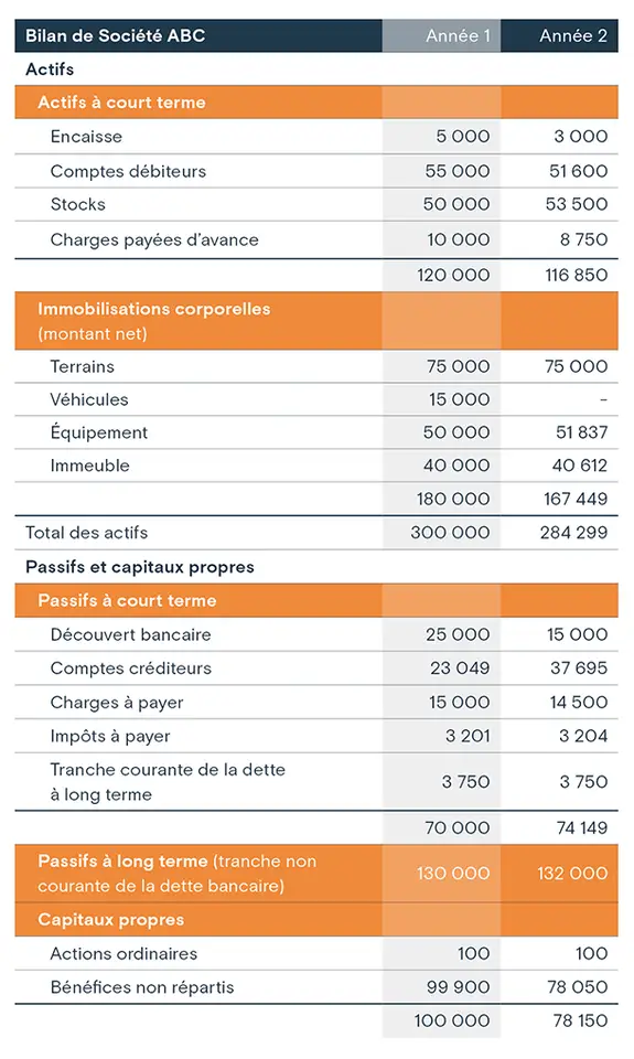 Le bilan révèle la valeur comptable des actifs, des passifs et des capitaux propres de l’entreprise.