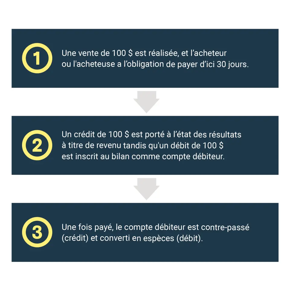 Un compte débiteur est un actif inscrit au bilan à la suite d’une transaction de vente non réglée, explique Nicolas Fontaine, conseiller d’affaires principal à BDC Services-conseils. «Plus précisément, il s’agit d’un actif monétaire dont la valeur sera réalisée une fois qu’il sera payé et converti en espèces.»