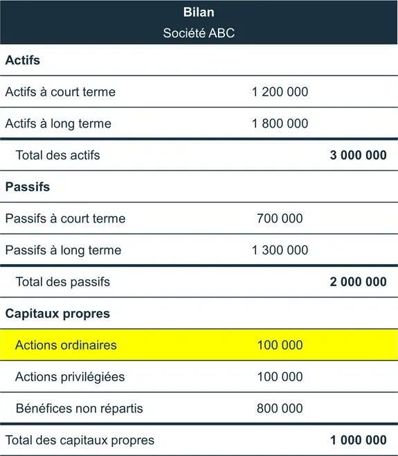 - Le nombre d’actions ordinaires se retrouve dans le bilan, dans la section des capitaux propres.