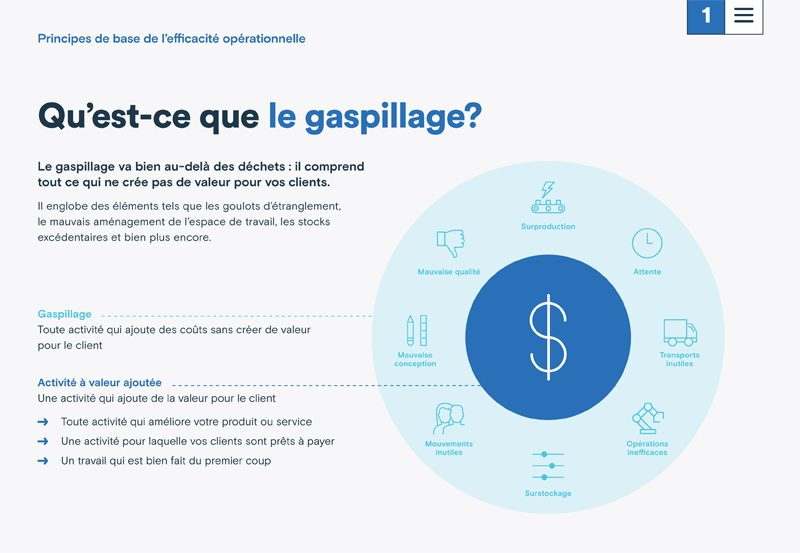 Repérez les sources de gaspillage au sein de votre entreprise, établissez de nouveaux IRC et créez des tableaux de bord pour mesurer et optimiser la performance de votre entreprise.