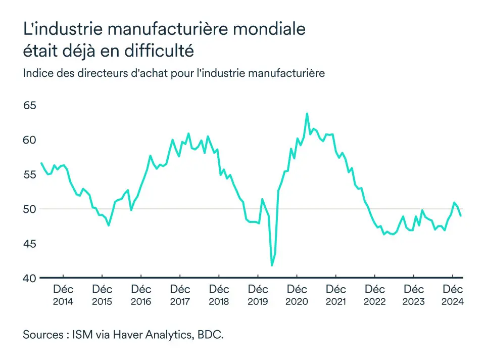 Les fabricants sont aux avant-postes de l'économie mondiale. Leurs observations de la situation et les décisions qu'ils prennent en matière de dépenses et d'embauches peuvent rapidement affecter la croissance mondiale. Il s’agit aussi, évidemment du secteur le plus sensible aux droits de douane.