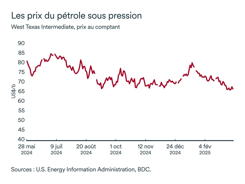 La production de pétrole compensera en partie la pression à la baisse sur ses prix. L'augmentation de l'offre des producteurs de l'OPEP, l'incertitude accrue en ce début d'année et les droits de douane imposés à la Chine et à d'autres pays exerceront une pression à la baisse sur les prix du pétrole cette année.