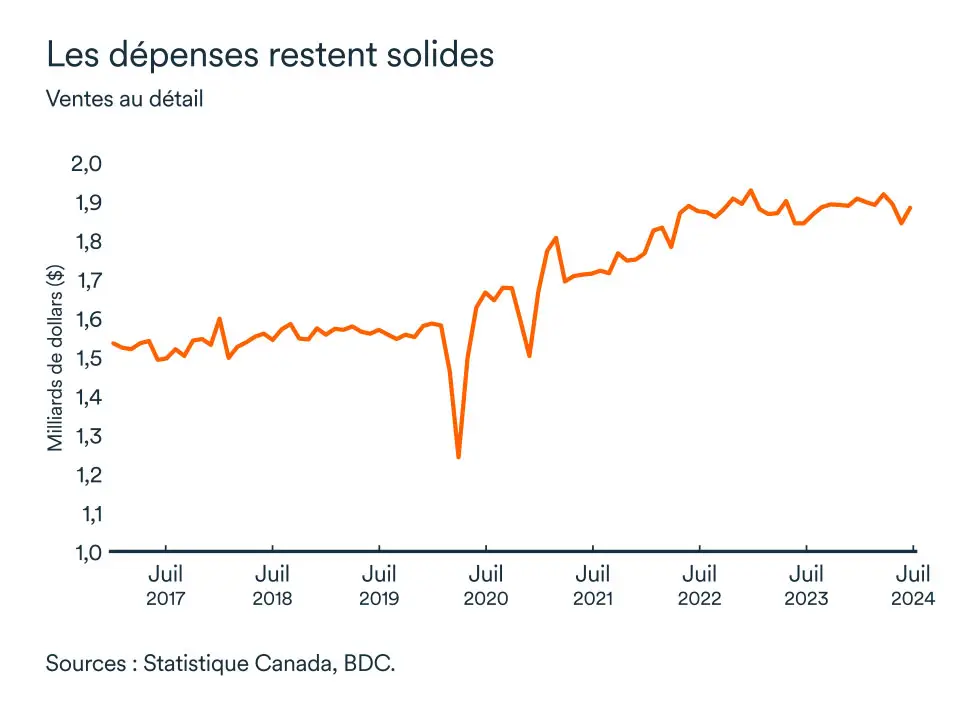 Toutefois,  la pression sur l'huile de canola en provenance de la Chine (droits de douane de 100 %) persiste malgré les exemptions sur les graines de canola. La solidité du marché de l'emploi maintient le taux de chômage à un faible niveau (5,4 %) dans la province. Ces conditions sont favorables à ce que les ménages continuent à dépenser en 2025.