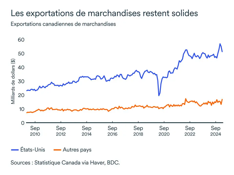 Pour l’instant, les risques liés au commerce extérieur et les changements en matière d’immigration rendent les perspectives beaucoup plus incertaines. Nous prévoyons que l’activité économique sera modeste en 2025, alors que les consommateurs et le marché immobilier demeurent frileux.