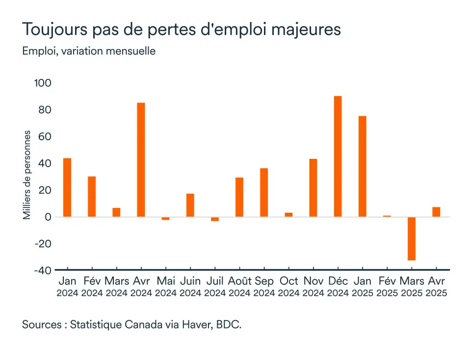 Ces résultats suggèrent que, même si les tensions commerciales avec les États-Unis venaient à s’améliorer, les consommateurs resteraient timides. Toutefois, il importe de souligner que l’économie affichait une belle remontée au dernier trimestre de 2024 et a commencé 2025 sur des bases solides. On est encore loin d’un environnement économique plus stable, mais les consommateurs seront aptes à soutenir l’économie lorsque l’incertitude diminuera et la confiance s’améliorera. Le marché résidentiel pourrait même connaître une vague importante de demande refoulée, une fois le contexte économique plus stable.