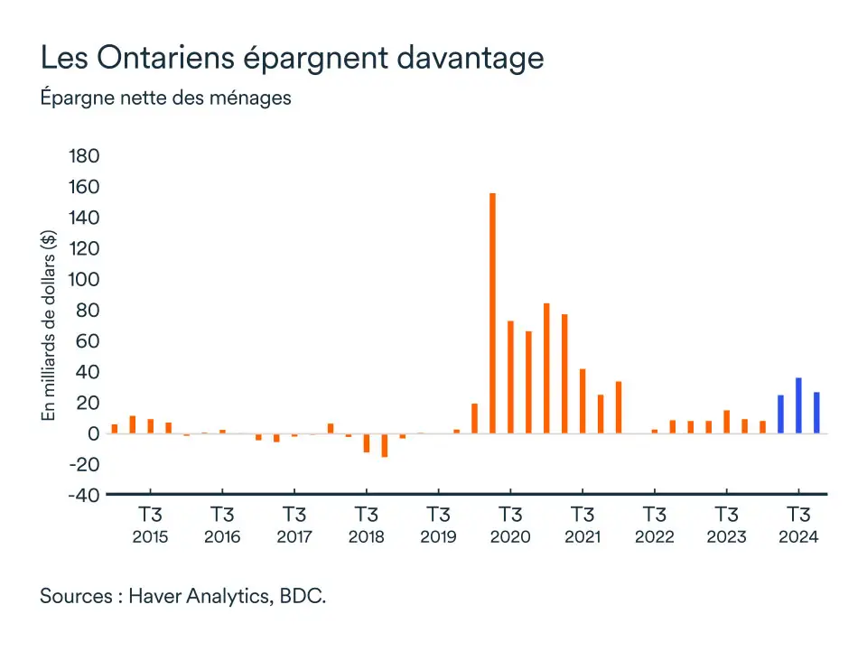 Par exemple, le taux de chômage a augmenté à un rythme beaucoup plus rapide à Windsor (+1,5) qu’à Toronto (+0,3), au cours des deux derniers mois. Alors que les négociations se poursuivent entre le Canada et les États-Unis, le marché de l'emploi devrait rester sous pression et peser sur la confiance des Ontariens.