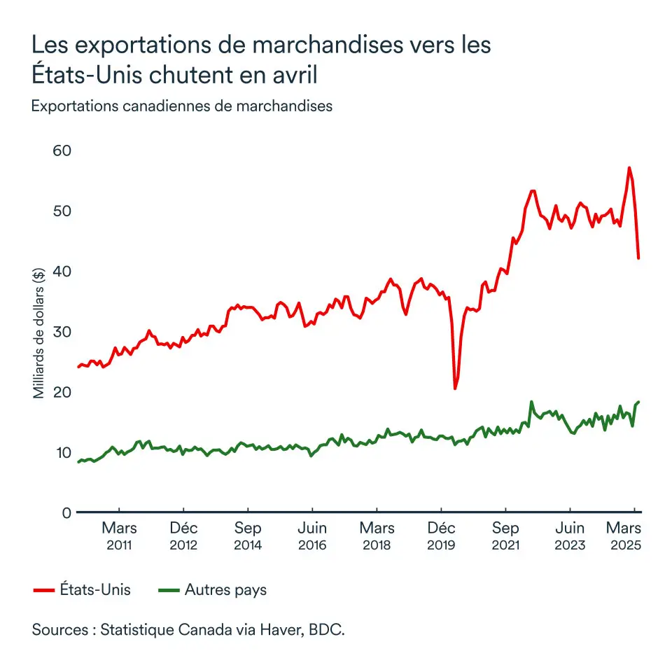 - Les négociations avec Washington se poursuivent et la situation évolue encore de jour en jour. D’ici à ce qu’une entente formelle soit conclue, les consommateurs resteront plus prudents et les entreprises continueront à vouloir diminuer leurs inventaires. Il faudra attendre encore quelque temps avant que les carnets de commande ne se regarnissent.